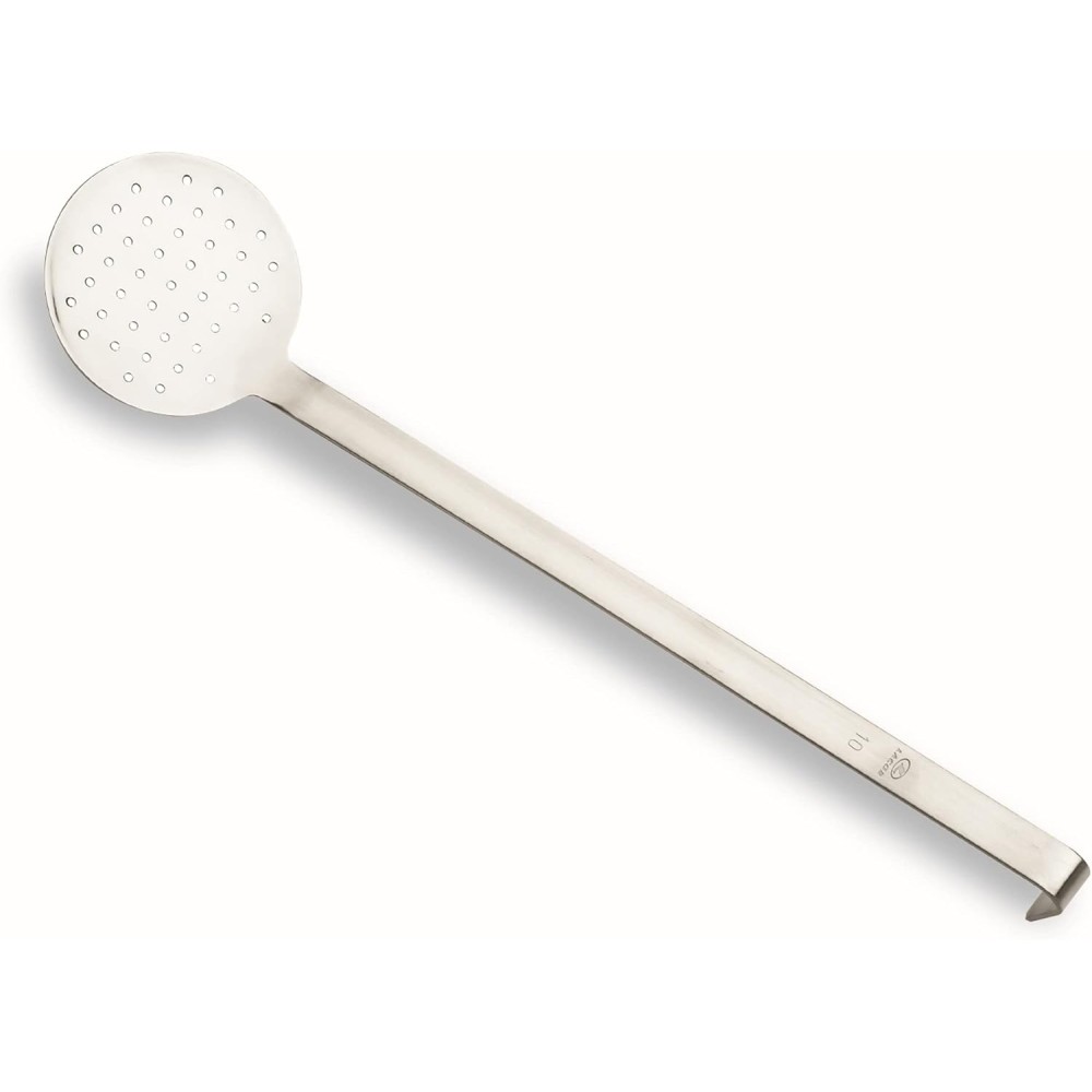 Consta de un largo mango y una especie de cazoleta en forma de paleta, muy abierta, y con orificios en su superficie para que al sacar los alimentos sólidos los líquidos se escurran por los agujeros.