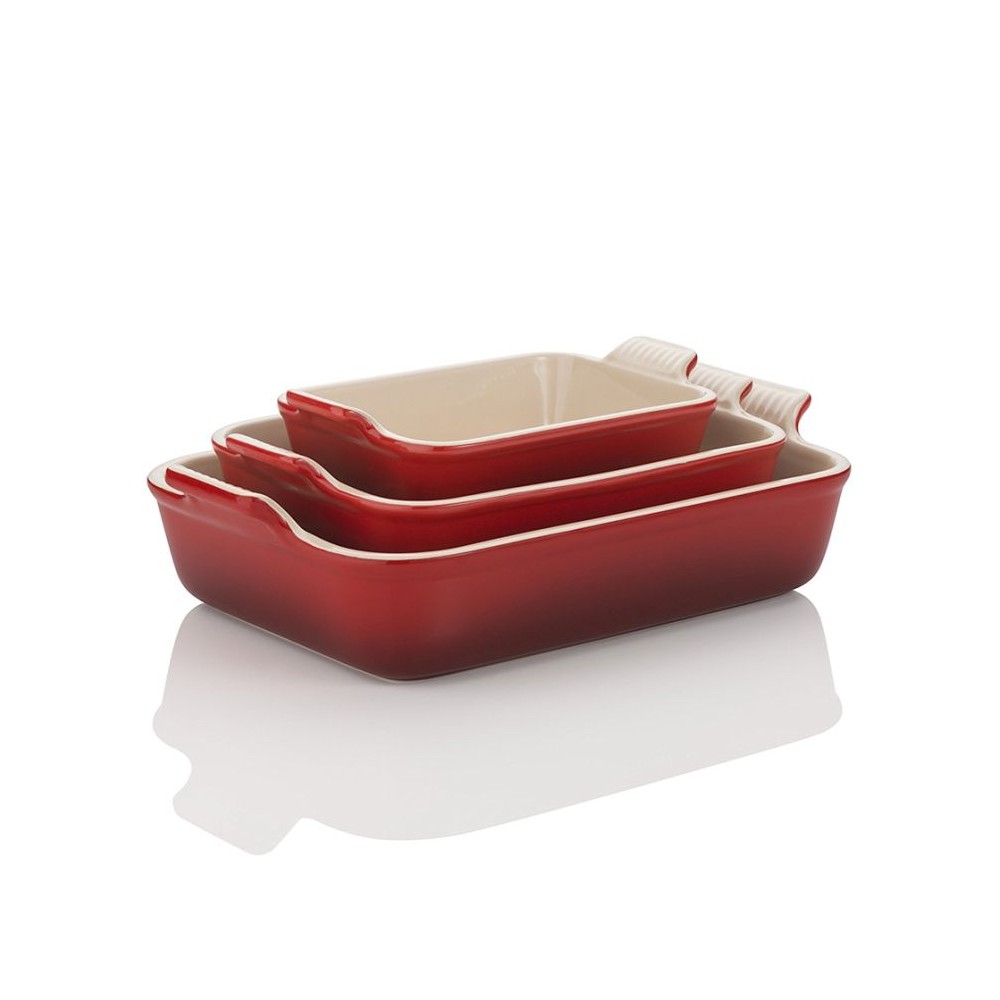 Envío gratis Bandeja Rectangular Heritage cereza 32cm Le Creuset Precio 73,00 € Bandeja de horno de cerámica de gres de 32 cm en el icónico color Cereza. Su gran capacidad la hace ideal para lasañas familiares, grandes asados y...