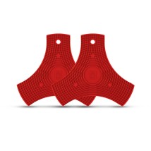 Protector de sartenes multiusos Bra Safe de silicona en color rojo.