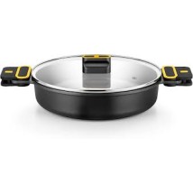 La cacerola baja Daily Pro de 28 cm es la medida perfecta para el uso diario, ideal para cocinar arroces y guisos para 3 o 4 personas. Fabricada en aluminio fundido ligero, es muy cómoda de manejar, cuenta con un potente antiadherente y es apta para todo tipo de fuegos, incluida la inducción.