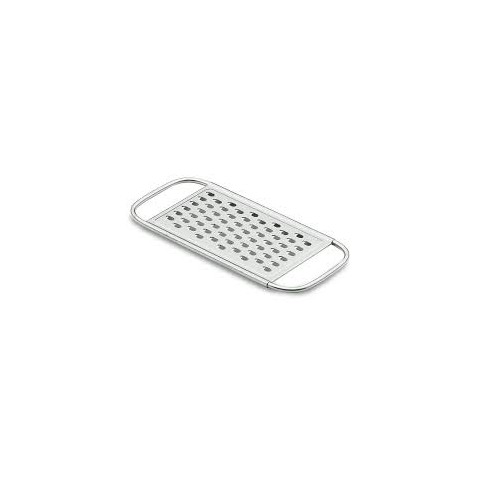 Rallador manual de superficie plana fabricado íntegramente en acero inoxidable de alta resistencia. Su paso grueso (universal) permite obtener virutas consistentes de quesos, hortalizas y frutas de forma rápida. Un diseño profesional, ultra plano y duradero, ideal para cocinas con poco espacio.