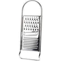 Rallador de mano plano fabricado íntegramente en acero inoxidable de alta calidad. Diseño mixto con dos superficies de rallado (fino y grueso) en una sola pieza. La herramienta más compacta, resistente y versátil para el uso diario en la cocina. 100% apto para lavavajillas.