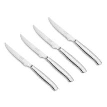 Cuchillos chuleteros Vier de la línea Murano. Fabricados en acero inoxidable de una sola pieza, destacan por su afilada hoja con filo microdentado, ideal para cortar carnes asadas, chuletones y pizzas sin esfuerzo. Diseño pulido, elegante, resistente al uso diario y 100% apto para lavavajillas.