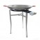 Conjunto compuesto de paellera de acero pulido, paellero alta gama y patas largas para terraza o jardín.