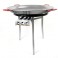 Conjunto compuesto de paellera de acero pulido, paellero alta gama y patas largas para terraza o jardín.