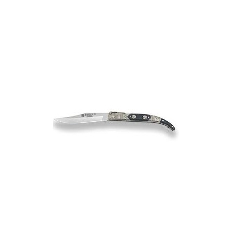 Una navaja tradicional muy resistente, ideal para llevar al campo o preparar los ingredientes de tu paella al aire libre. Su hoja de 8 cm ofrece un corte preciso, mientras que el mango de zamak decorado le aporta peso, firmeza y un toque clásico que no pasa de moda.