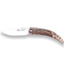 Navaja Joker de punta de ciervo tallada a mano con motivo Macho Montés (8 cm)