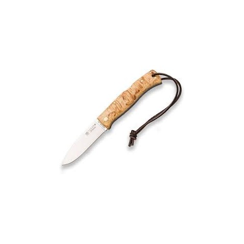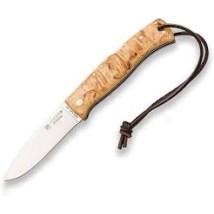 Navaja de bushcraft Joker Ártica con mango de abedul rizado y filo Scandi (8 cm)