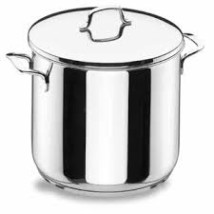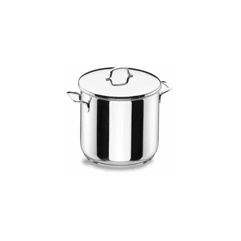 Olla alta de acero inoxidable 18/10 de 28 cm con tapa. Su formato extra alto te da máxima capacidad en litros para tus grandes caldos de paella, ocupando menos espacio a lo ancho en la cocina. Fondo termodifusor apto para inducción.