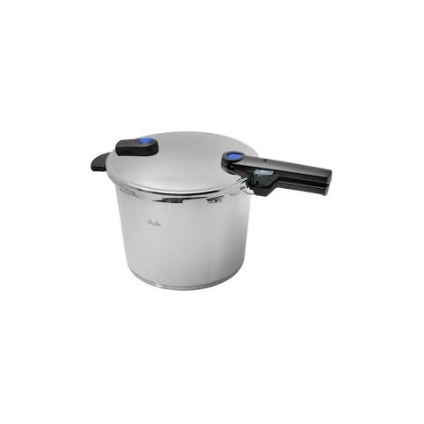 Ingeniería alemana de gran capacidad. 10 litros de volumen con fondo de 26 cm. La olla a presión más avanzada para preparar caldos masivos de forma ultra rápida, segura y silenciosa. Acero inoxidable 18/10 de alto brillo y base Superthermic apta para inducción.