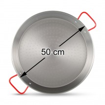 Paellera pulida o de hierro "Paelleras el Cid" de 50 cm de diámetro para fuego de leña o gas.