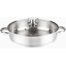 Rustidera o tartera de acero inoxidable 18/10 de 30 cm. Su gran superficie es ideal para sellar grandes cantidades de carne para tus paellas o cocinar arroces melosos para 5-6 personas. Fondo termodifusor profesional apto para inducción y horno.